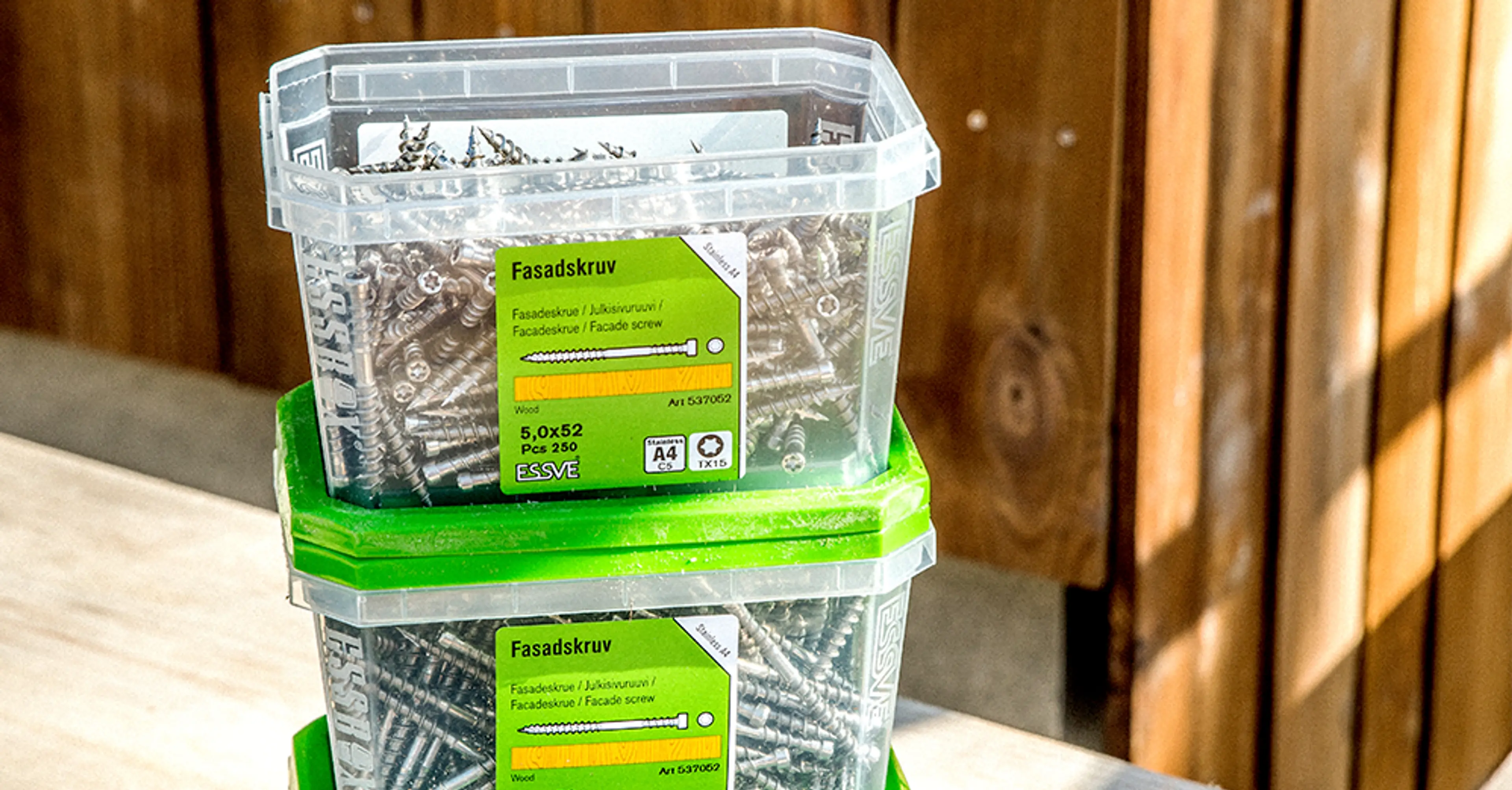 Det selges langt mer vedlikeholdsvennlig kledning enn tidligere, og syrefaste skruer benyttes dermed i stadig større grad. Derfor har ESSVE utviklet syrefaste fasadeskruer i flere farger som skal gå mer i ett med fasaden.