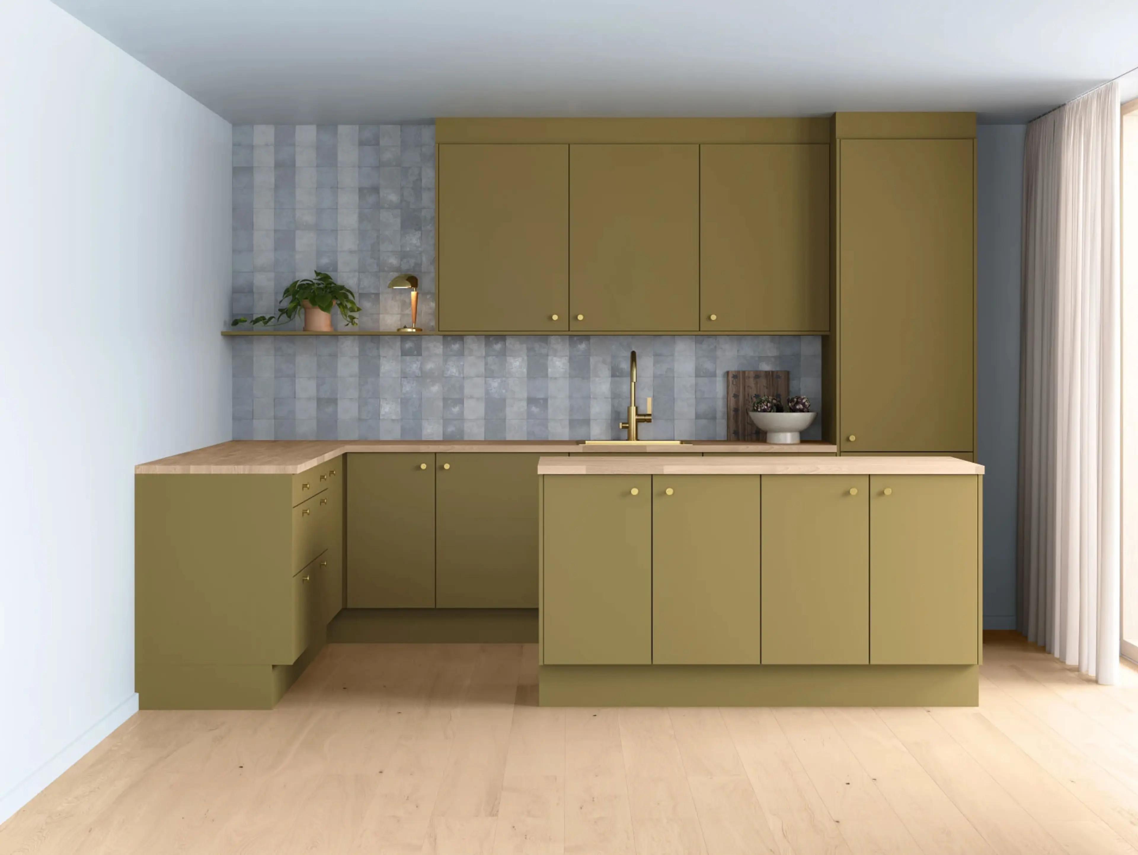 Under ser du: Bistro Dus gul fra Drømmekjøkkenet, Favn og Line fra Sigdal, skuffer Nordic Craft fra JKE. Foto: Drømmekjøkkenet, Sigdal og JKE