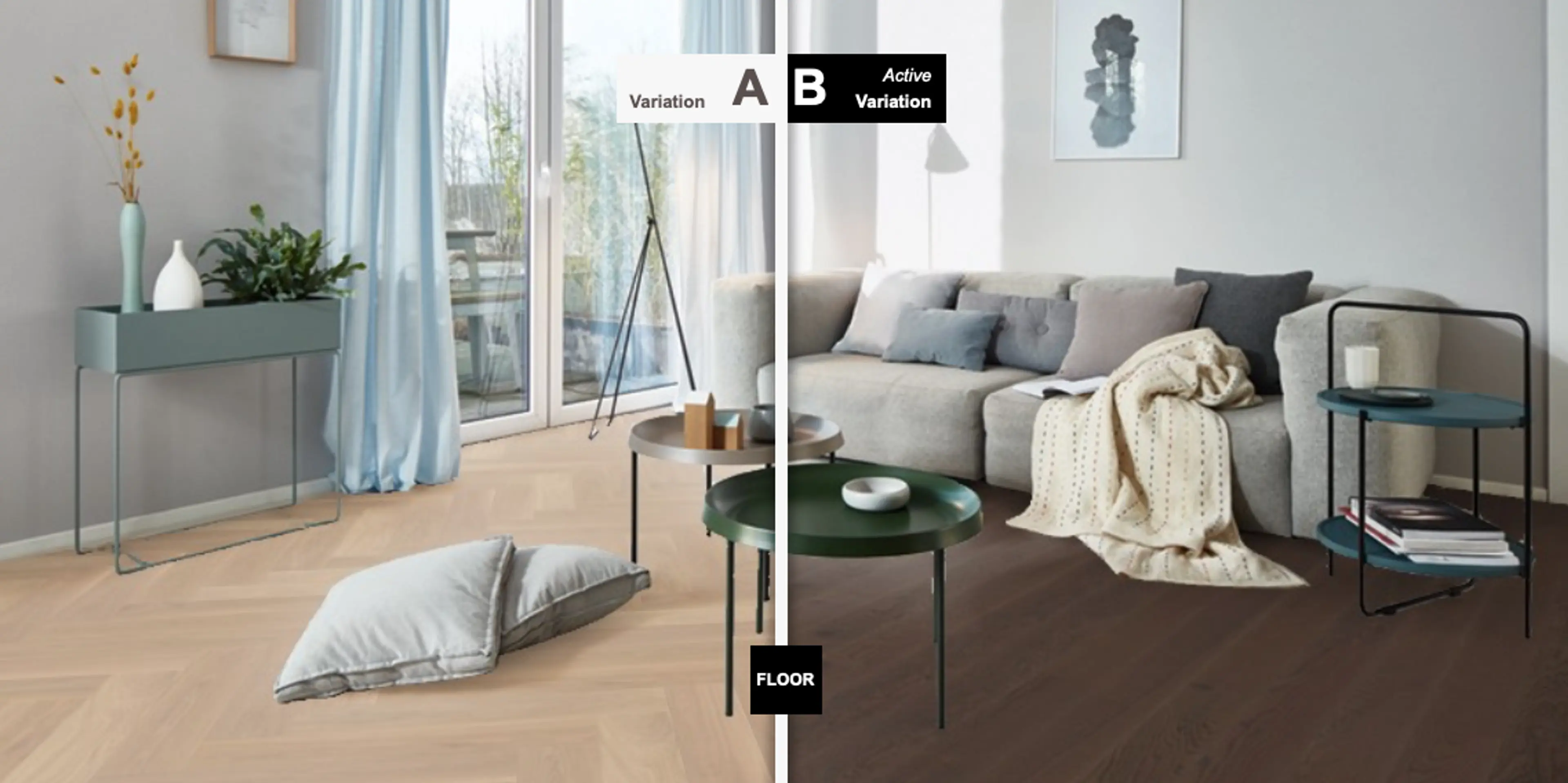 Med funksjonen «Compare» kan du sammenligne to forskjellige parketter i samme rom.