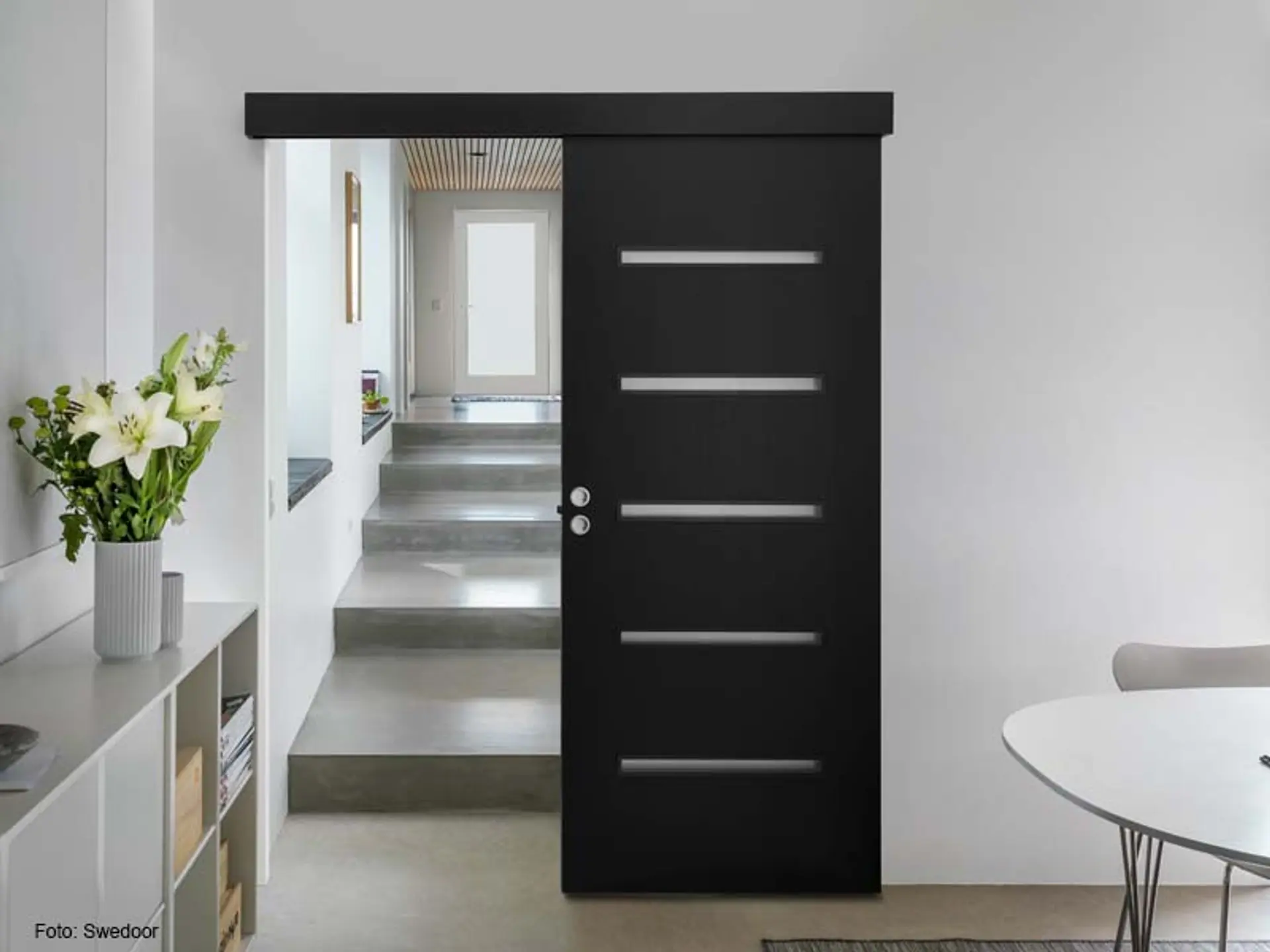 Bilde: Utenpåliggende skyvedør. Foto: Swedoor