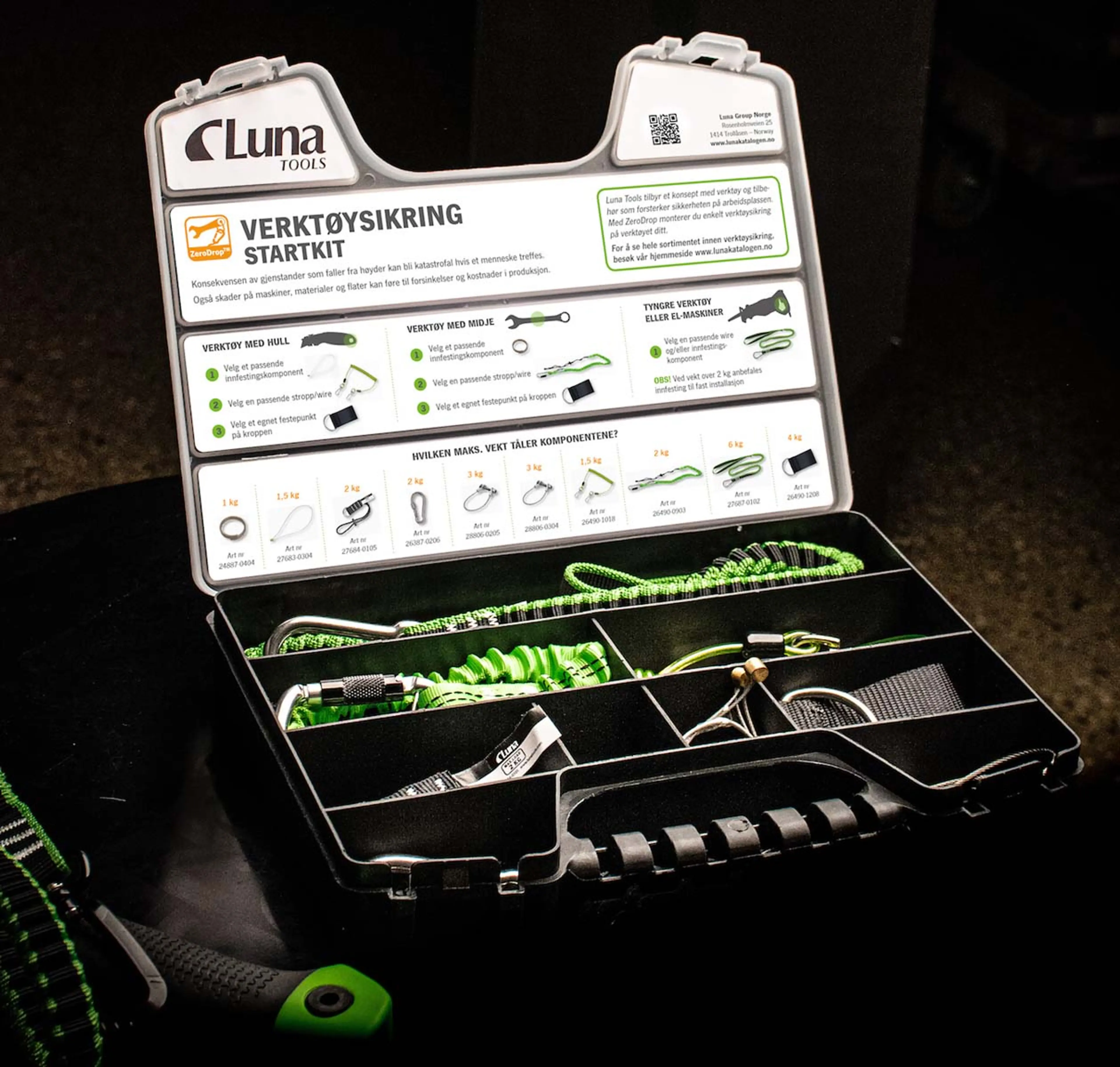 En av forsikringene mot at dette skal skje, får du med Luna Tools ZeroDrop. Det er en serie brukervennlige produkter laget for enkel sikring av håndverktøy. Målet er at man skal kunne jobbe sikkert og effektivt i høyden selv om man har med seg omfattende verktøysystemer. Løsningen er universell, slik at du enkelt kan sikre dine yndlingsverktøy.
