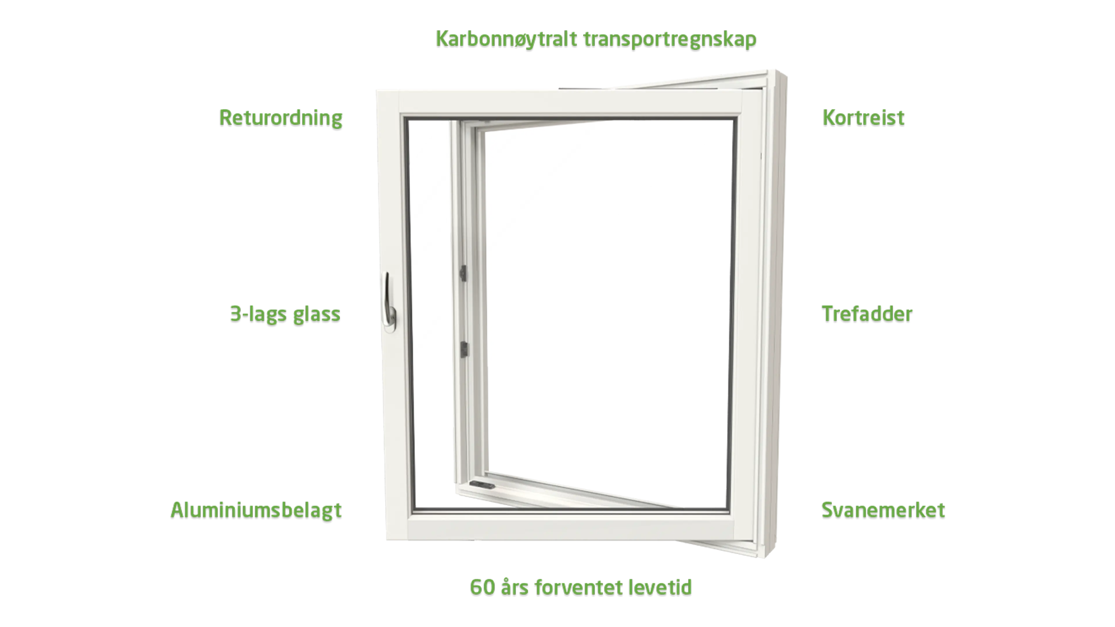 Når produktene konfigureres etter GreenTech-standarden, som inneholder krav om aluminiumsbelagte vinduer og 3-lags glass for bedre isolasjonsevne, resulterer dette i den beste energiytelsen vi kan gi.